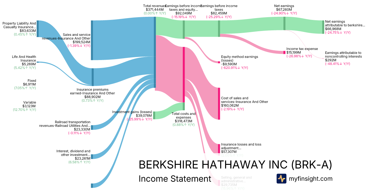 For the year ending 2025-12-31, BRK-A made $371,444M in revenue. $66,968M in net income. Net profit margin of 18.03%.