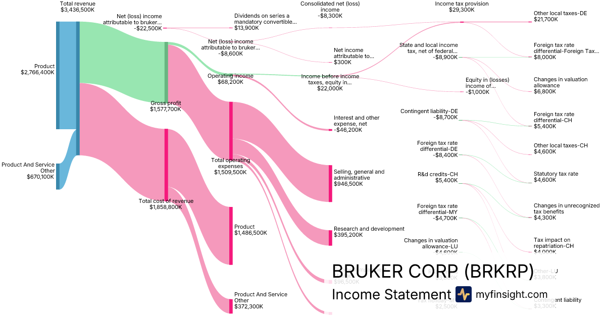 For the year ending 2025-12-31, BRKRP made $3,436,500K in revenue. -$22,500K in net income. Net profit margin of -0.65%.