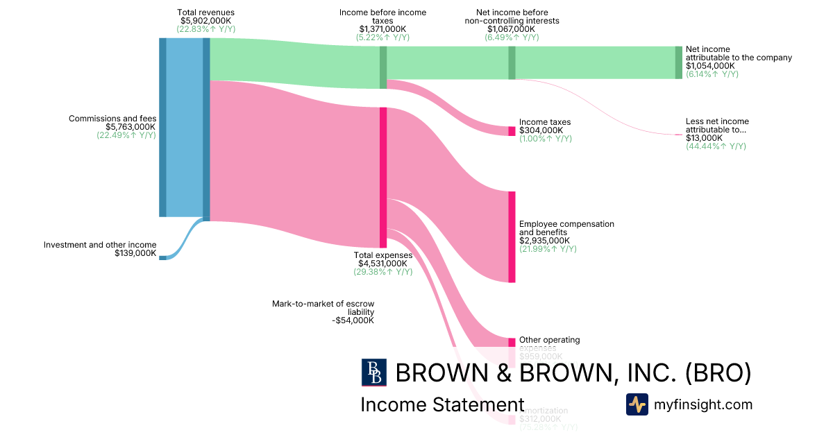 For the year ending 2025-12-31, BRO made $5,902,000K in revenue. $1,054,000K in net income. Net profit margin of 17.86%.