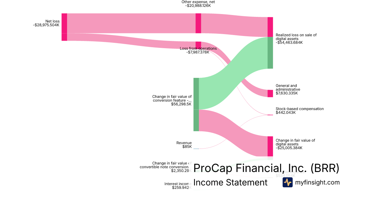 For the year ending 2025-12-31, BRR made $85K in revenue. -$28,975.504K in net income. Net profit margin of -34088.83%.