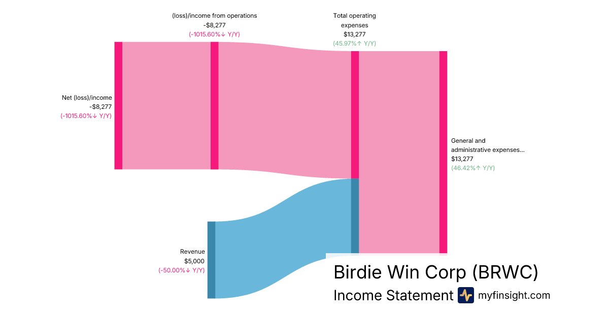 For the quarter ending 2026-01-31, BRWC made $5,000 in revenue. -$8,277 in net income. Net profit margin of -165.54%.