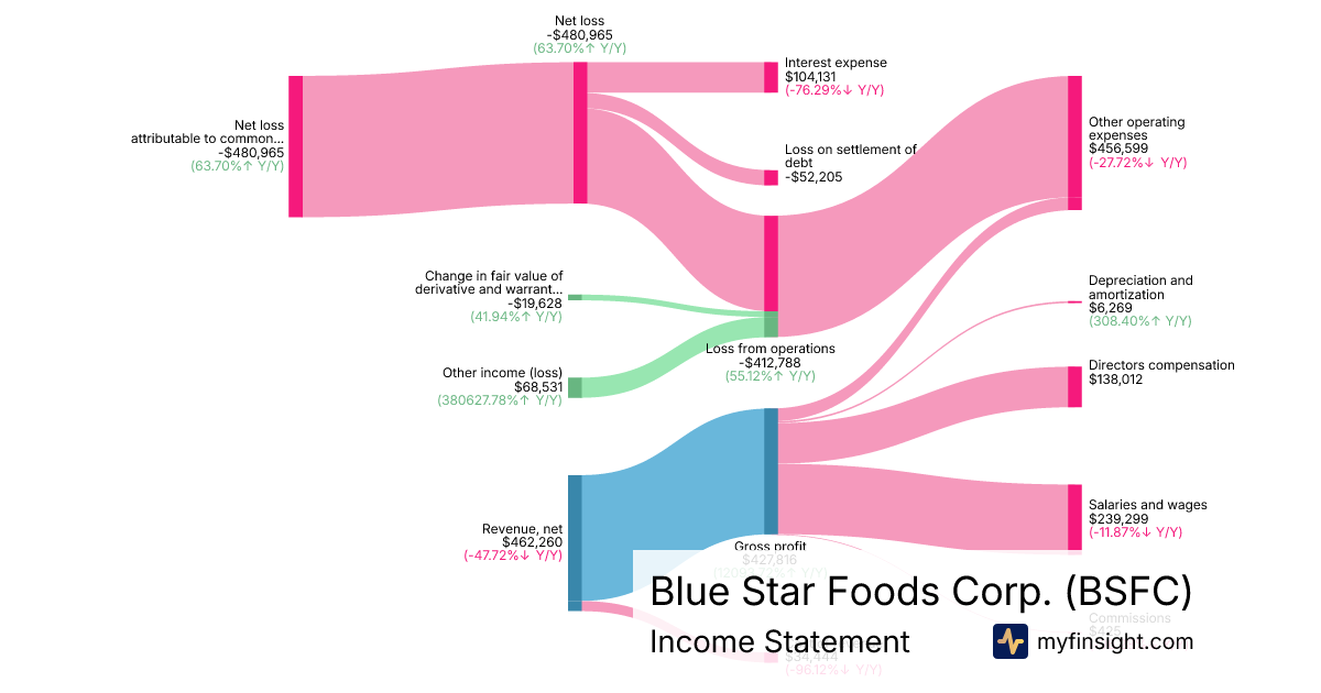 For the quarter ending 2025-09-30, BSFC made $462,260 in revenue. -$480,965 in net income. Net profit margin of -104.05%.