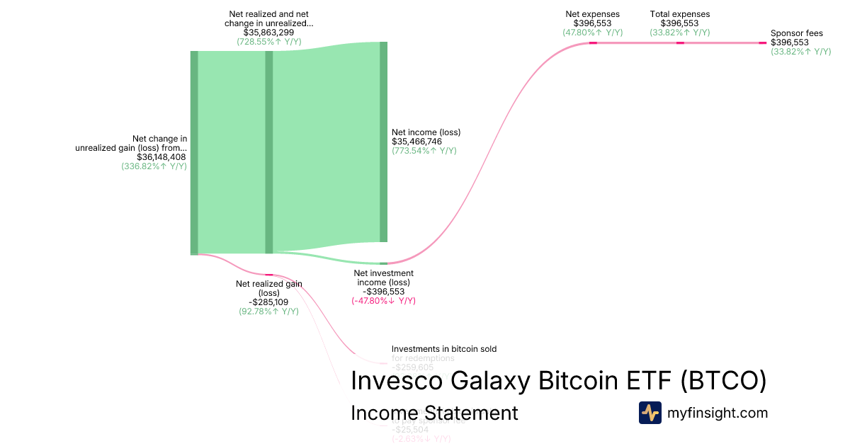 | Net realized and net change in unrealized gain (loss) from investments in bitcoin | 35,863,299 | 126,760,745 | -73,007,980 | 4,328,434 |