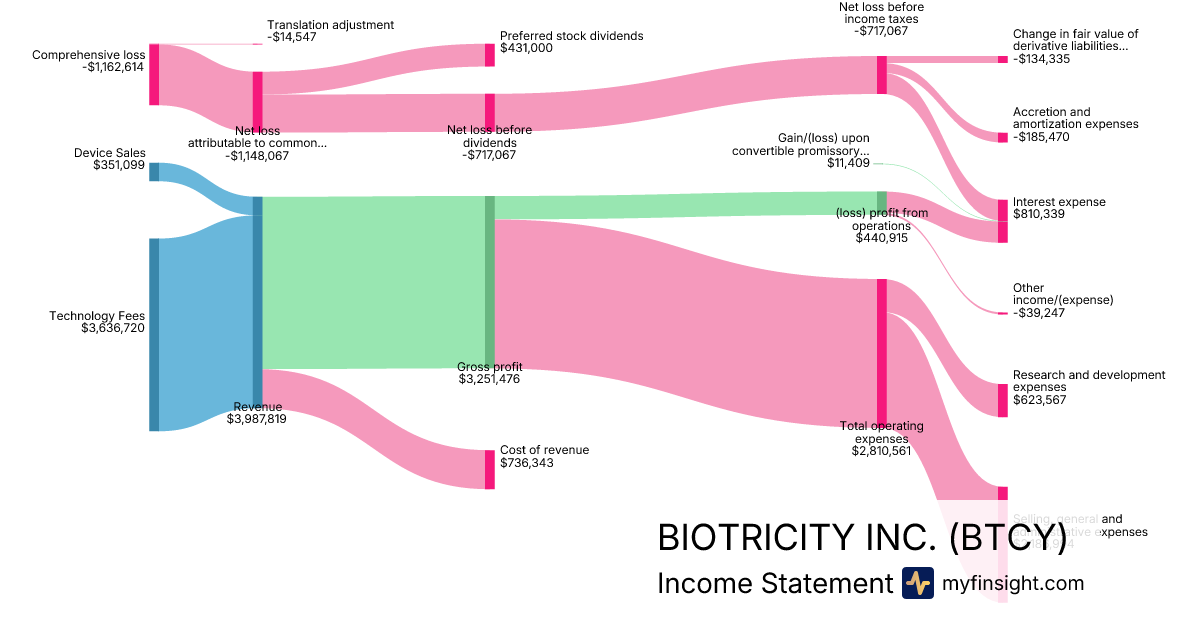 For the quarter ending 2025-12-31, BTCY made $3,987,819 in revenue. -$1,162,614 in net income. Net profit margin of -29.15%.