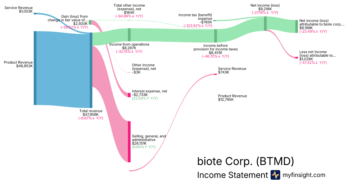 For the quarter ending 2025-09-30, BTMD made $47,956K in revenue. $8,188K in net income. Net profit margin of 17.07%.