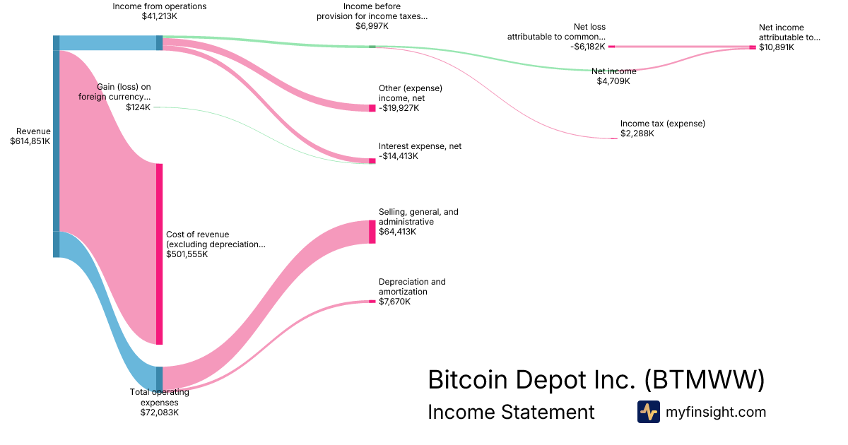 For the year ending 2025-12-31, BTMWW made $614,851K in revenue. -$6,182K in net income. Net profit margin of -1.01%.