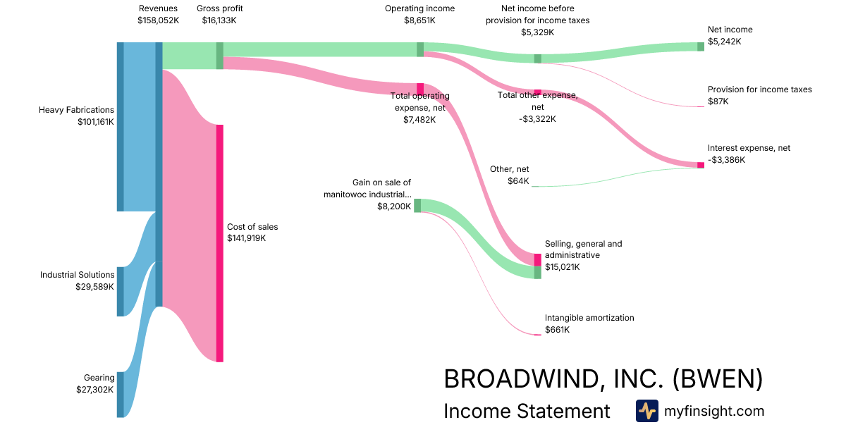 For the year ending 2025-12-31, BWEN made $158,052K in revenue. $5,242K in net income. Net profit margin of 3.32%.