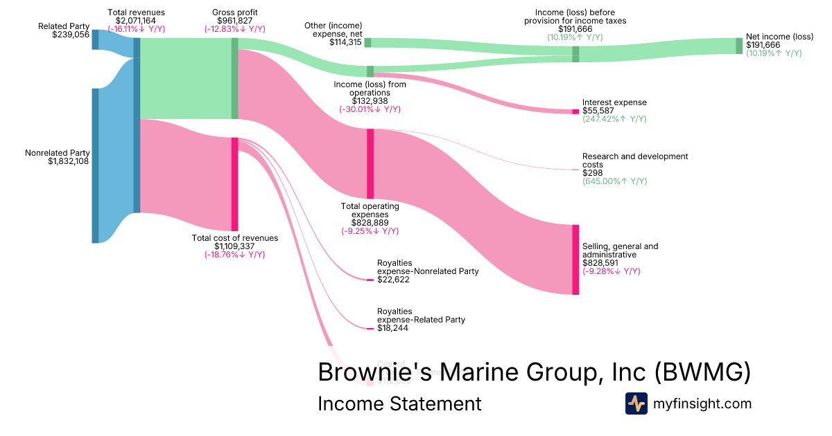 For the quarter ending 2025-09-30, BWMG made $2,071,164 in revenue. $191,666 in net income. Net profit margin of 9.25%.