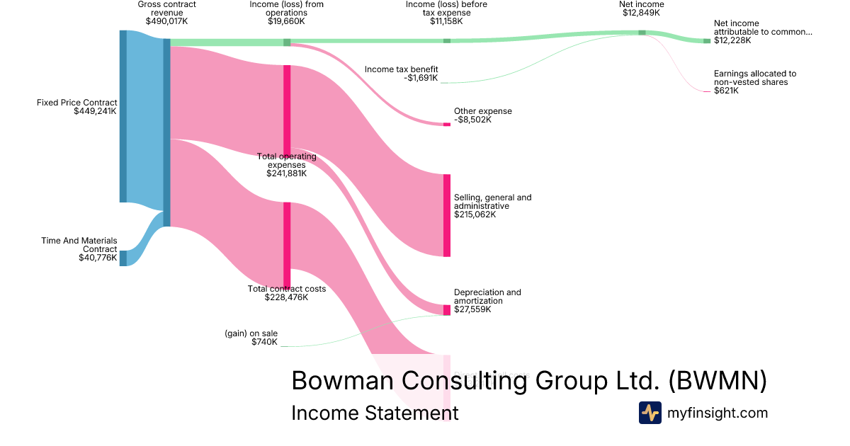For the year ending 2025-12-31, BWMN made $490,017K in revenue. $12,228K in net income. Net profit margin of 2.50%.