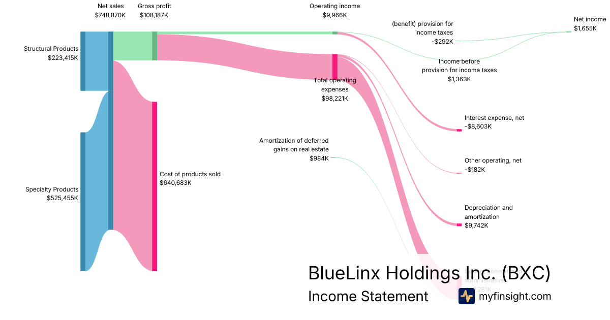 For the quarter ending 2025-09-27, BXC made $748,870K in revenue. $1,655K in net income. Net profit margin of 0.22%.