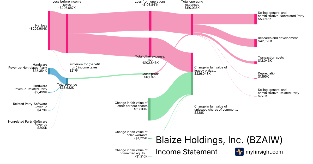 For the year ending 2025-12-31, BZAIW made $38,632K in revenue. -$206,904K in net income. Net profit margin of -535.58%.