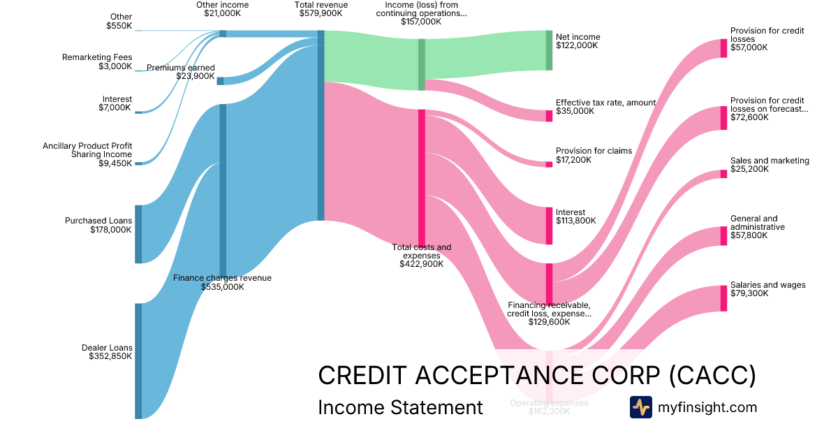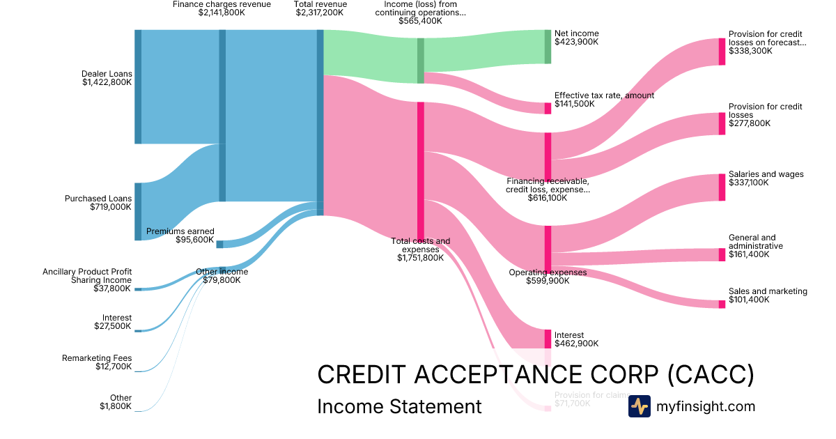 For the year ending 2025-12-31, CACC made $2,317,200K in revenue. $423,900K in net income. Net profit margin of 18.29%.