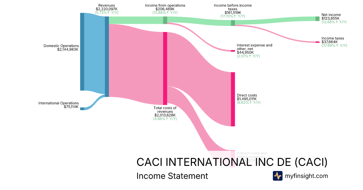 For the quarter ending 2025-12-31, CACI made $2,220,097K in revenue. $123,855K in net income. Net profit margin of 5.58%.