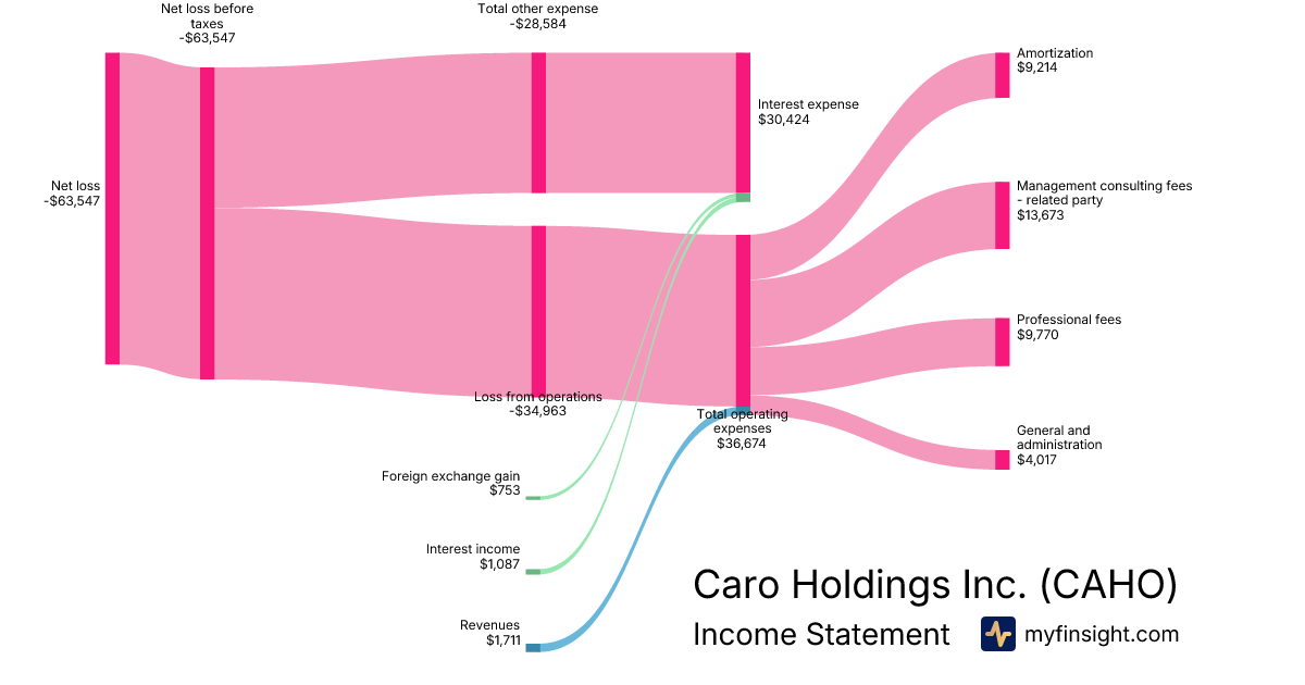 For the quarter ending 2025-12-31, CAHO made $1,711 in revenue. -$63,547 in net income. Net profit margin of -3714.03%.