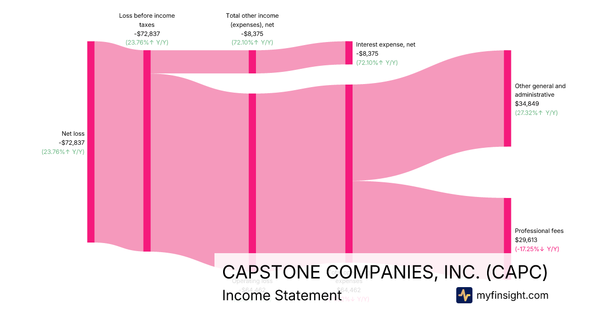 For the quarter ending 2025-09-30, CAPC made $64,462 in revenue. -$72,837 in net income. Net profit margin of -112.99%.