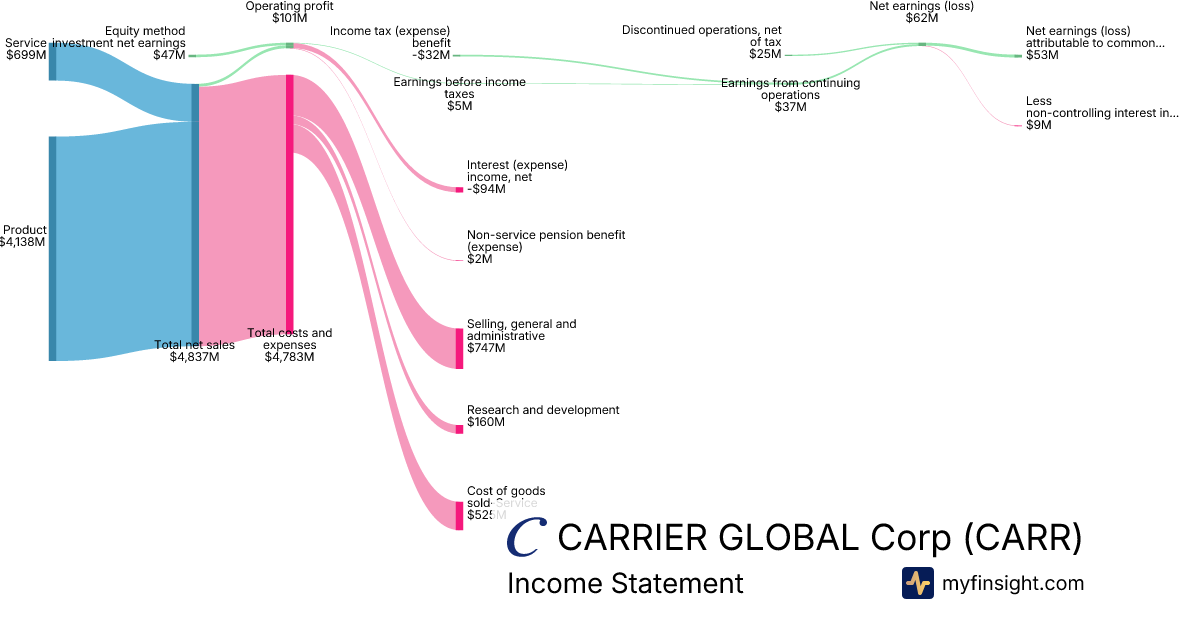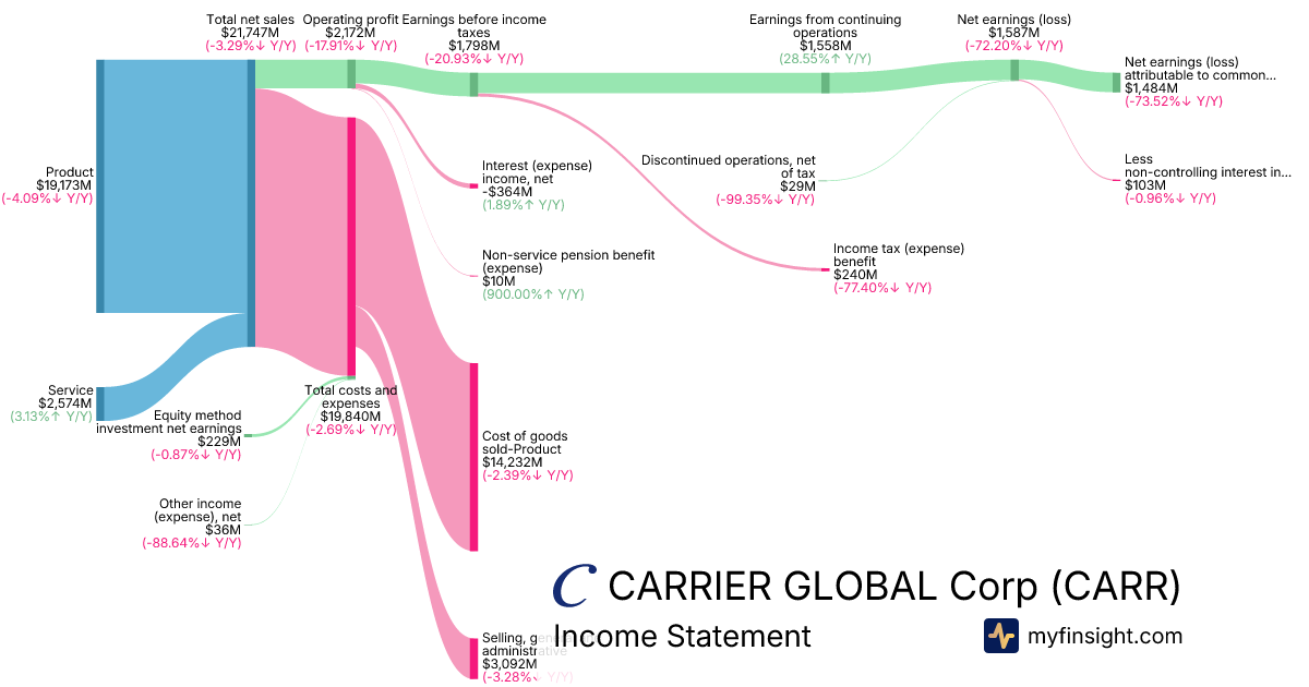 For the year ending 2025-12-31, CARR made $21,747M in revenue. $1,484M in net income. Net profit margin of 6.82%.