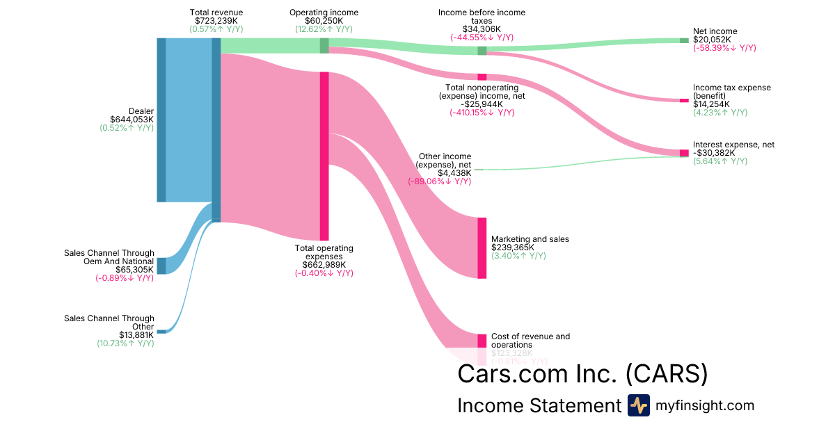 For the year ending 2025-12-31, CARS made $723,239K in revenue. $20,052K in net income. Net profit margin of 2.77%.