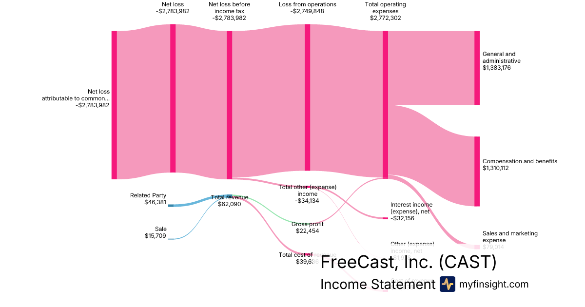 For the quarter ending 2025-12-31, CAST made $62,090 in revenue. -$2,783,982 in net income. Net profit margin of -4483.78%.