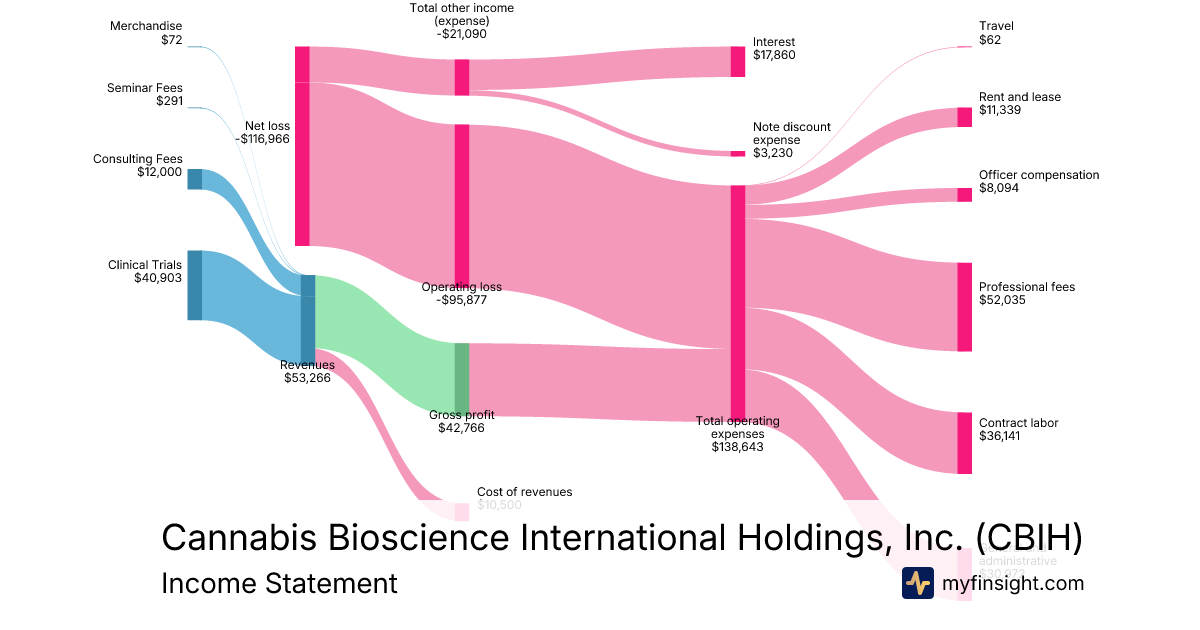 For the quarter ending 2025-11-30, CBIH made $53,266 in revenue. -$116,966 in net income. Net profit margin of -219.59%.