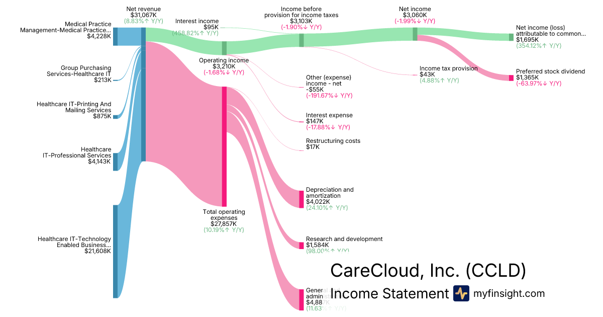 For the quarter ending 2025-09-30, CCLD made $31,067K in revenue. $1,695K in net income. Net profit margin of 5.46%.