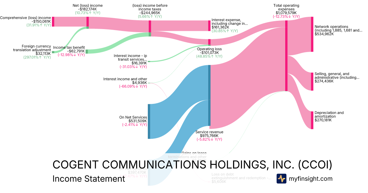 For the year ending 2025-12-31, CCOI made $975,766K in revenue. -$150,061K in net income. Net profit margin of -15.38%.