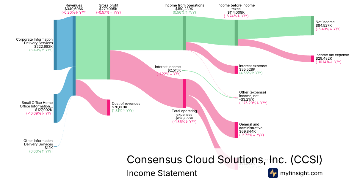For the year ending 2025-12-31, CCSI made $349,696K in revenue. $84,527K in net income. Net profit margin of 24.17%.