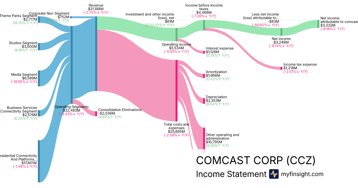 | Net income attributable to comcast corporation | 3,332 | 11,123 | 3,375 | 3,629 |