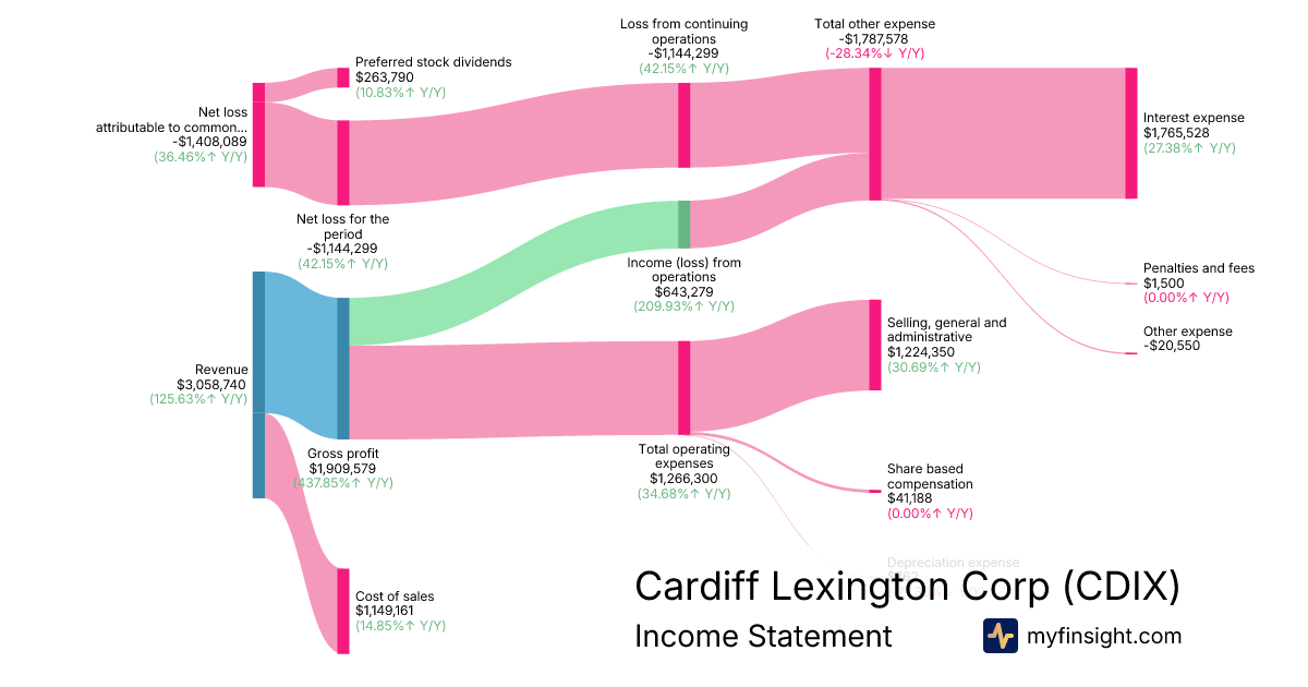 For the quarter ending 2025-09-30, CDIX made $3,058,740 in revenue. -$1,408,089 in net income. Net profit margin of -46.03%.