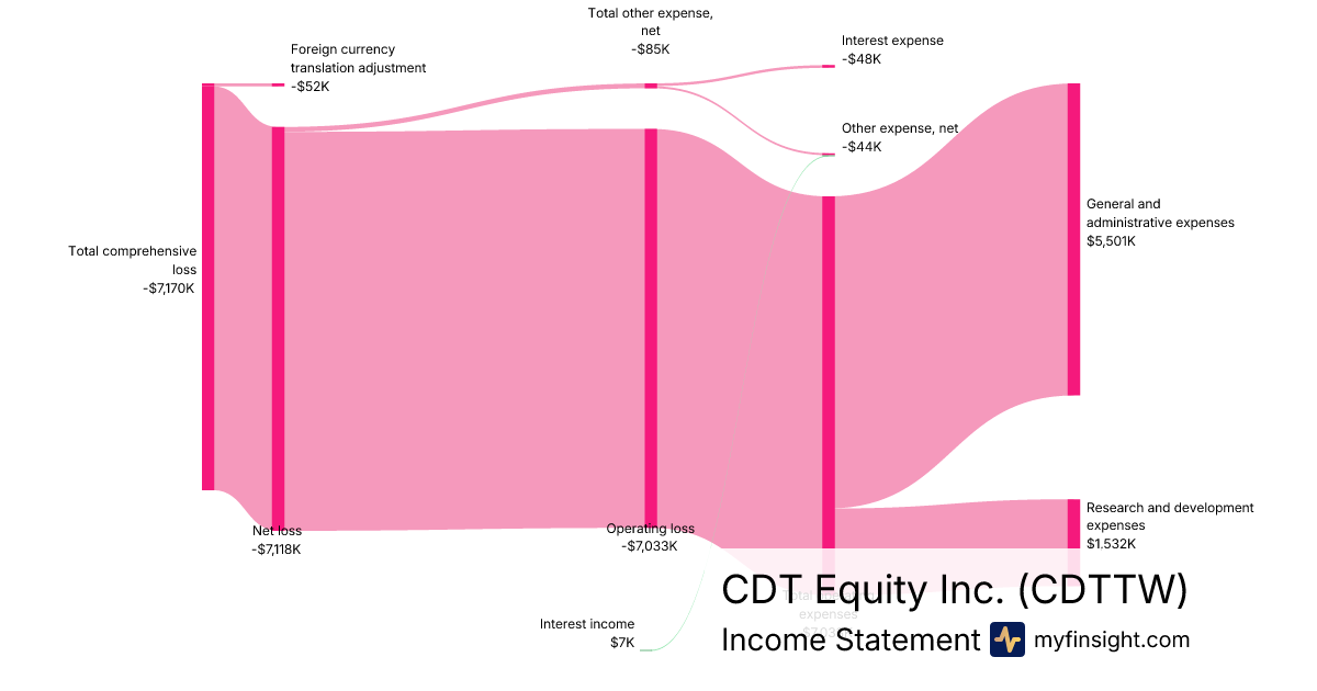 For the quarter ending 2025-09-30, CDTTW made $7,040K in revenue. -$7,170K in net income. Net profit margin of -101.85%.