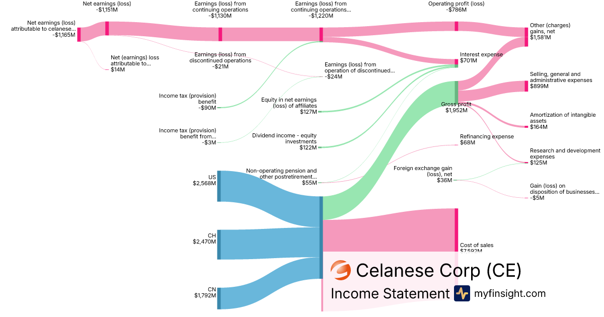 For the year ending 2025-12-31, CE made $9,544M in revenue. -$1,165M in net income. Net profit margin of -12.21%.