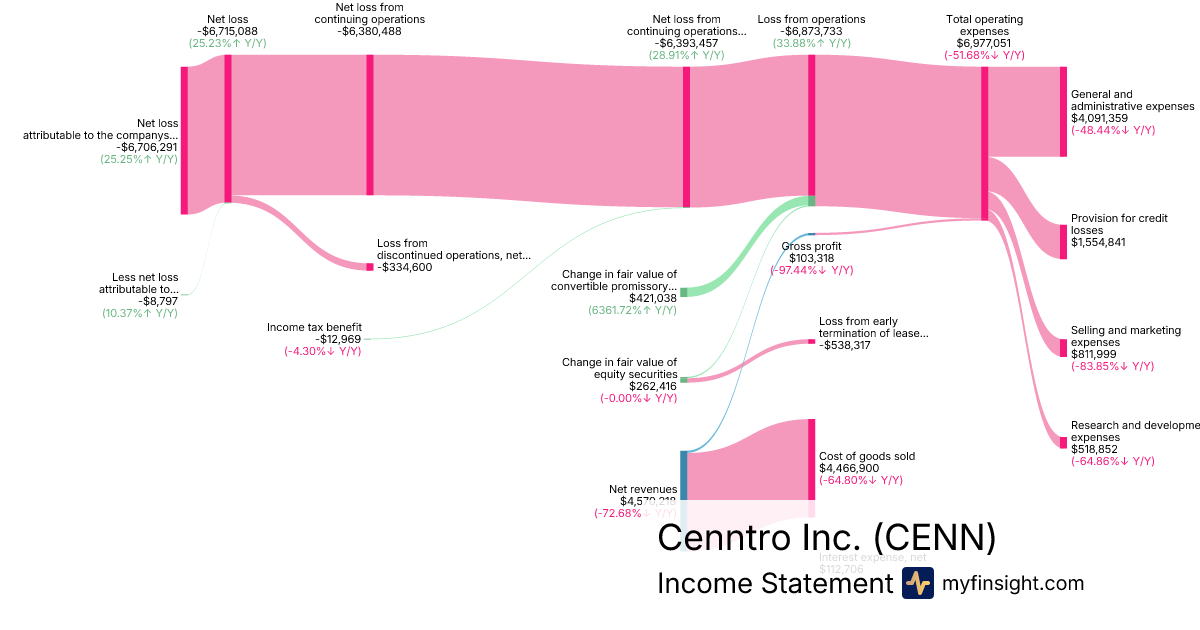 For the quarter ending 2025-09-30, CENN made $4,570,218 in revenue. -$6,706,291 in net income. Net profit margin of -146.74%.