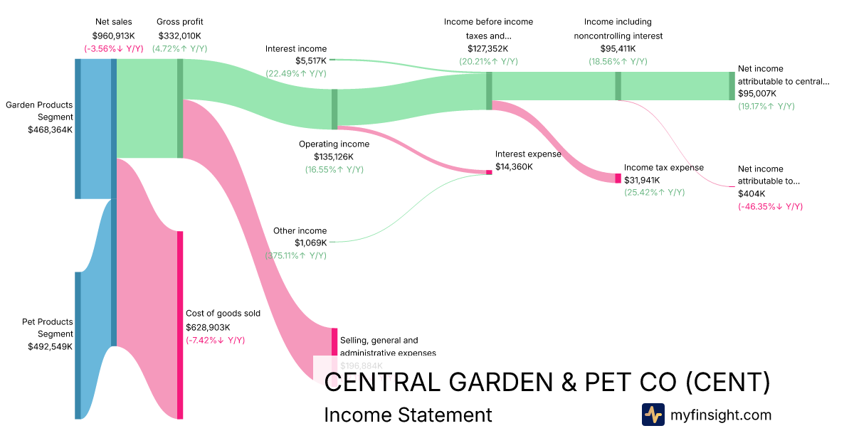 | Net income attributable to central garden& pet company | 95,007 | 63,633 | 14,009 | 79,724 |