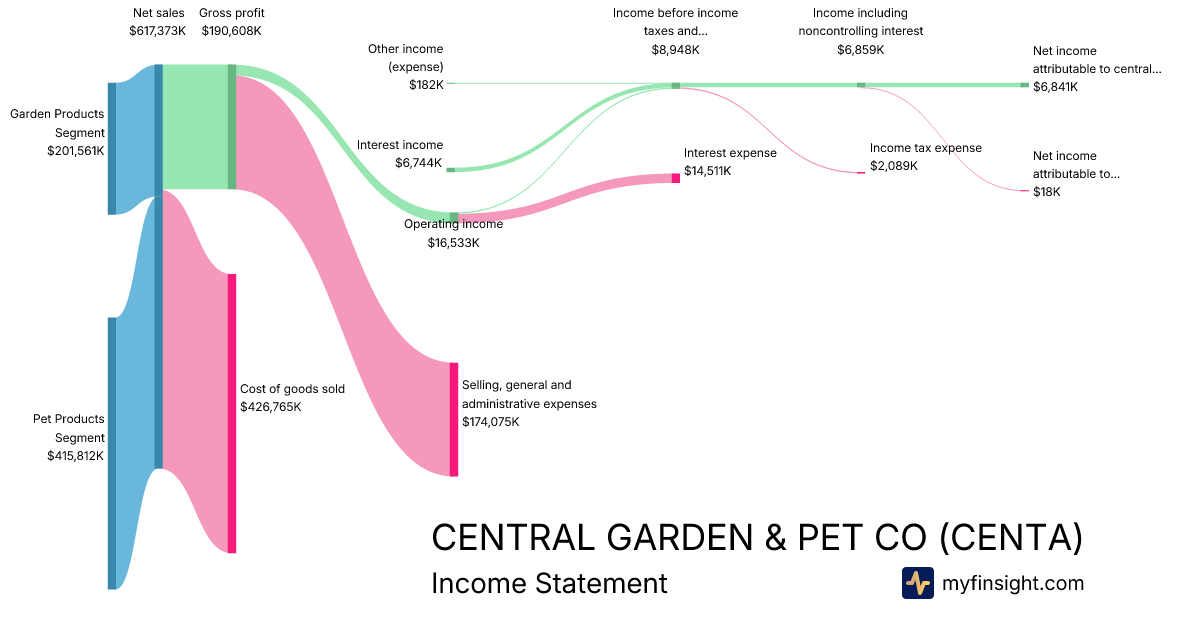 For the quarter ending 2025-12-27, CENTA made $617,373K in revenue. $6,841K in net income. Net profit margin of 1.11%.