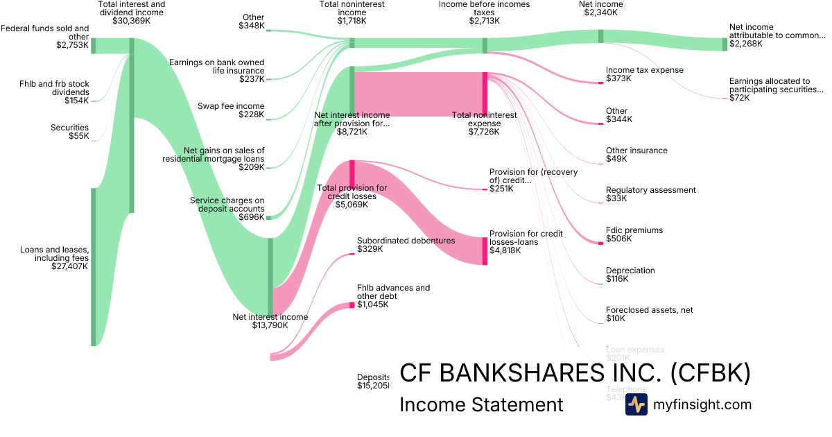 For the quarter ending 2025-09-30, CFBK made $61,461K in revenue. $2,268K in net income. Net profit margin of 3.69%.