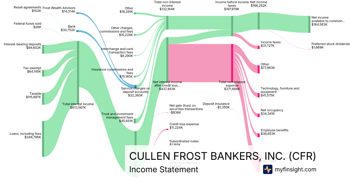 For the year ending 2025-12-31, CFR made $5,024,630K in revenue. $641,882K in net income. Net profit margin of 12.77%.