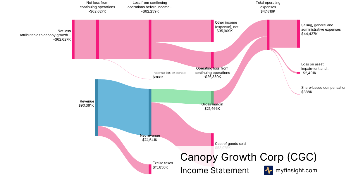 For the quarter ending 2025-12-31, CGC made $74,541K in revenue. -$62,627K in net income. Net profit margin of -84.02%.