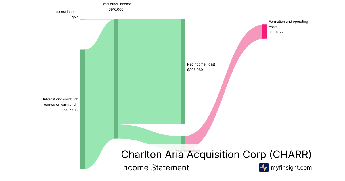 For the quarter ending 2025-09-30, CHARR made $916,066 in revenue. $806,989 in net income. Net profit margin of 88.09%.