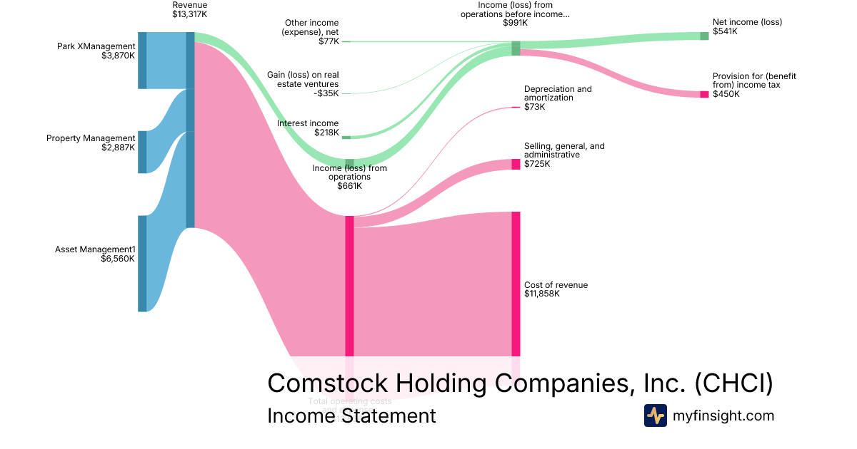 For the quarter ending 2025-09-30, CHCI made $13,317K in revenue. $541K in net income. Net profit margin of 4.06%.