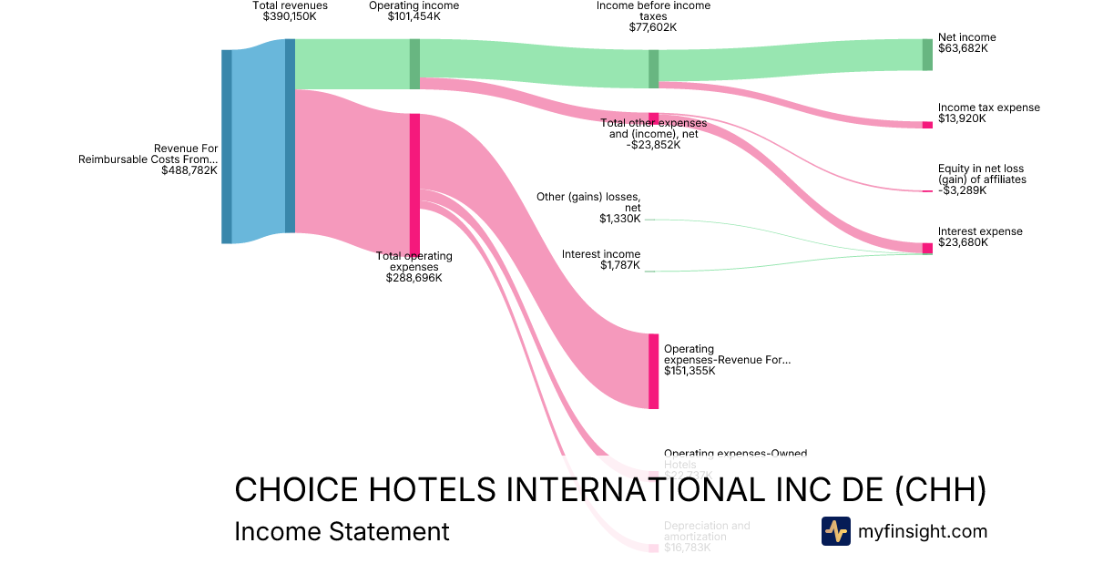 For the year ending 2025-12-31, CHH made $1,596,793K in revenue. $369,946K in net income. Net profit margin of 23.17%.