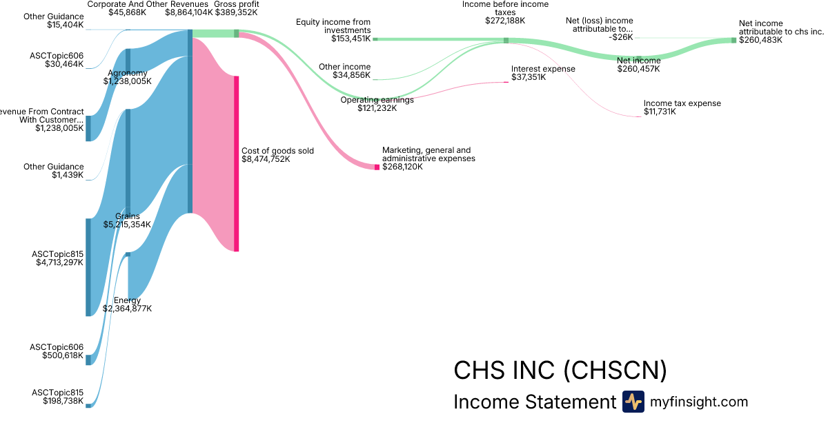 For the quarter ending 2025-11-30, CHSCN made $8,864,104K in revenue. $260,483K in net income. Net profit margin of 2.94%.