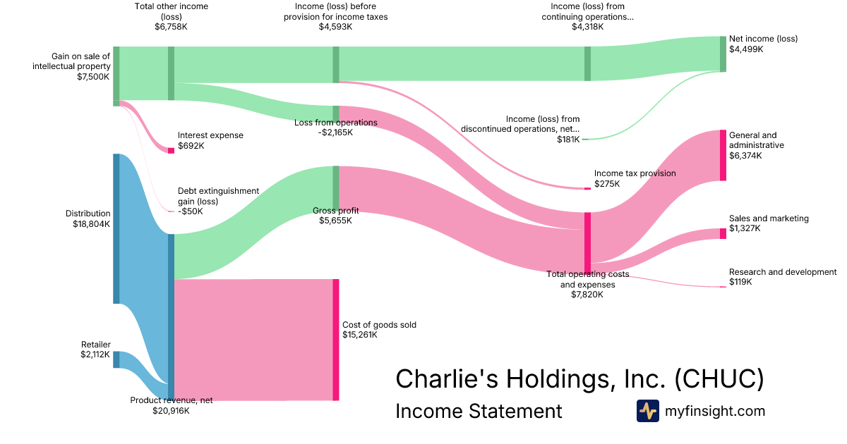 For the year ending 2025-12-31, CHUC made $20,916K in revenue. $4,499K in net income. Net profit margin of 21.51%.