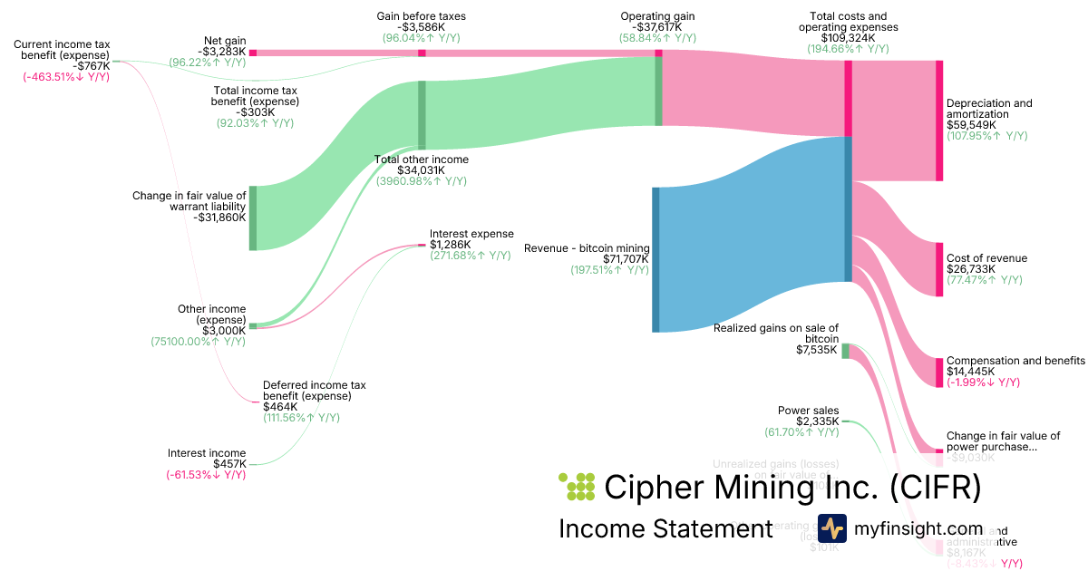 For the quarter ending 2025-09-30, CIFR made $71,707K in revenue. -$3,283K in net income. Net profit margin of -4.58%.