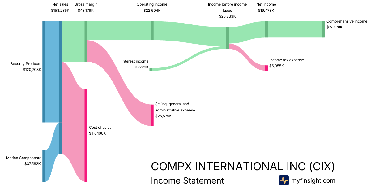 For the year ending 2025-12-31, CIX made $158,285K in revenue. $19,478K in net income. Net profit margin of 12.31%.