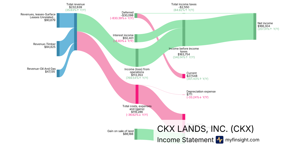 For the quarter ending 2025-09-30, CKX made $232,639 in revenue. $166,304 in net income. Net profit margin of 71.49%.