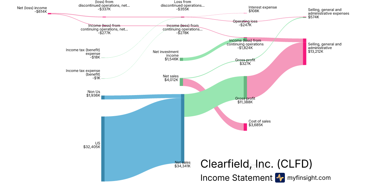For the quarter ending 2025-12-31, CLFD made $34,341K in revenue. -$614K in net income. Net profit margin of -1.79%.