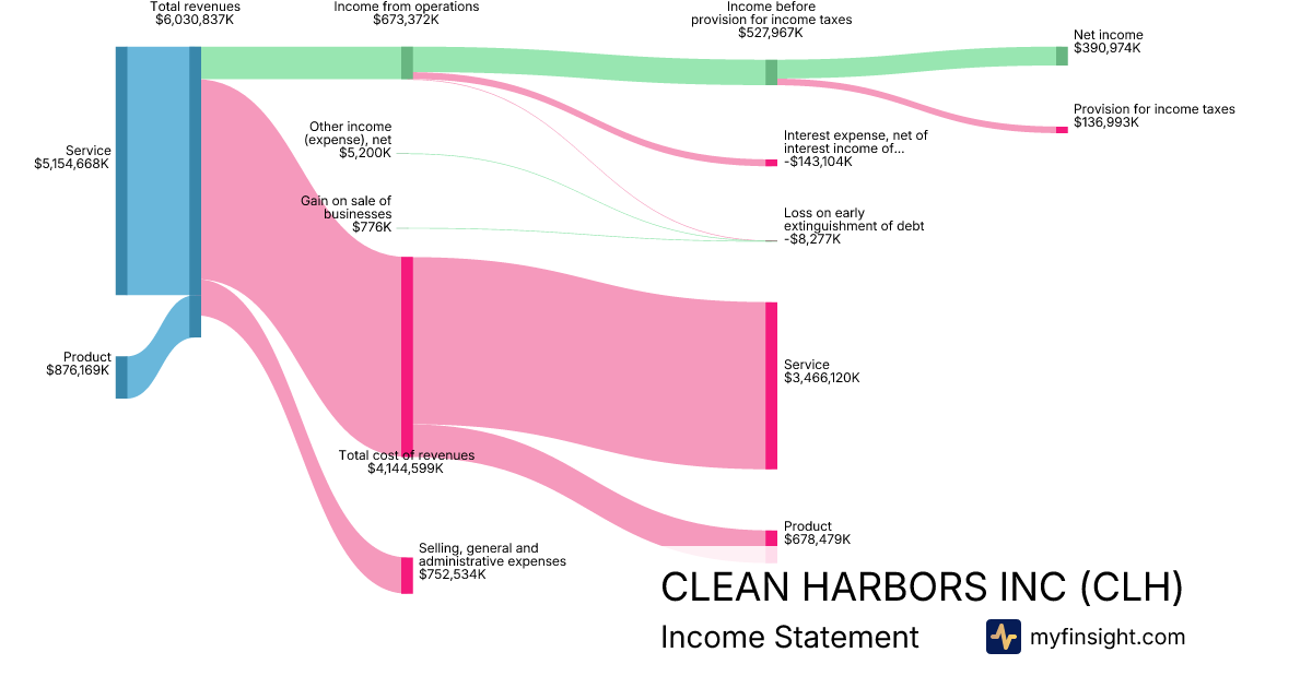 For the year ending 2025-12-31, CLH made $6,030,837K in revenue. $390,974K in net income. Net profit margin of 6.48%.