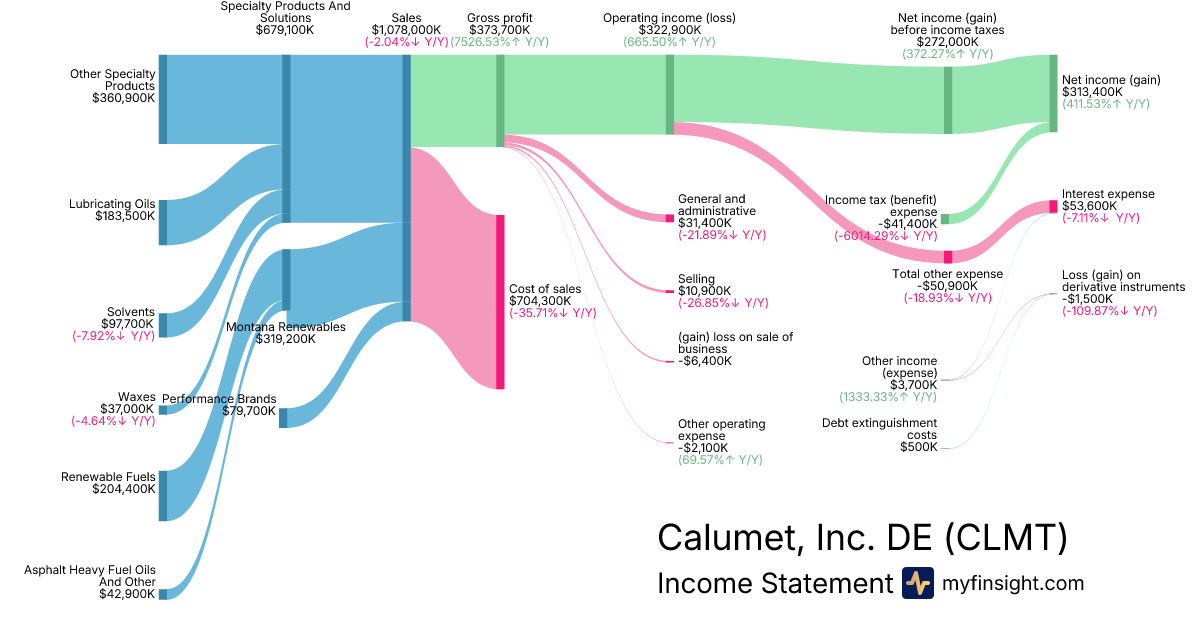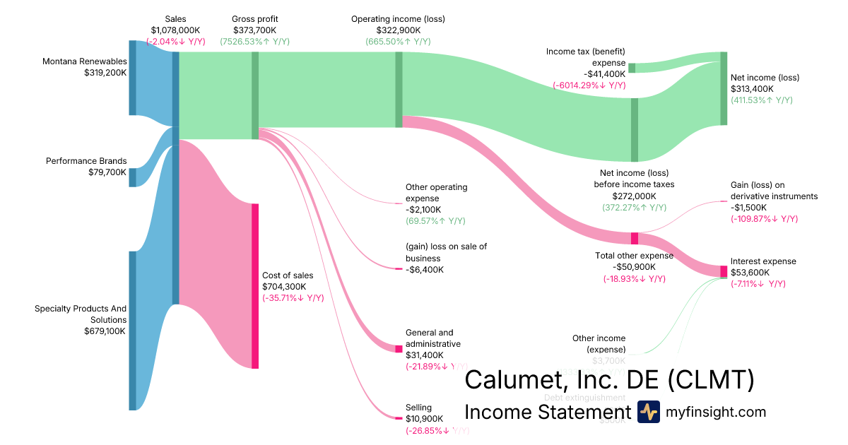 For the quarter ending 2025-09-30, CLMT made $1,078,000K in revenue. $313,400K in net income. Net profit margin of 29.07%.