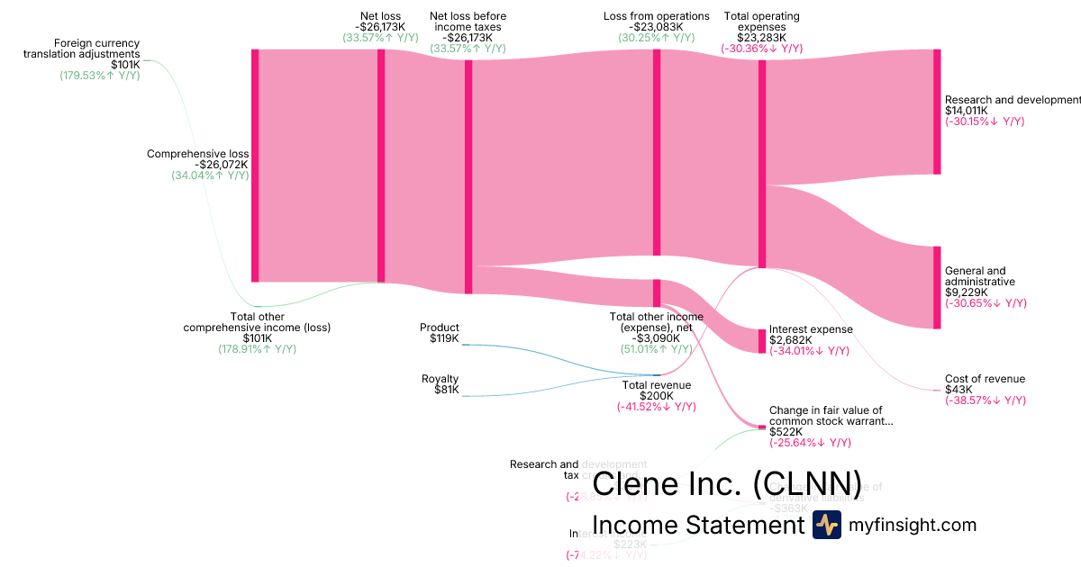 For the year ending 2025-12-31, CLNN made $200K in revenue. -$26,072K in net income. Net profit margin of -13036.00%.