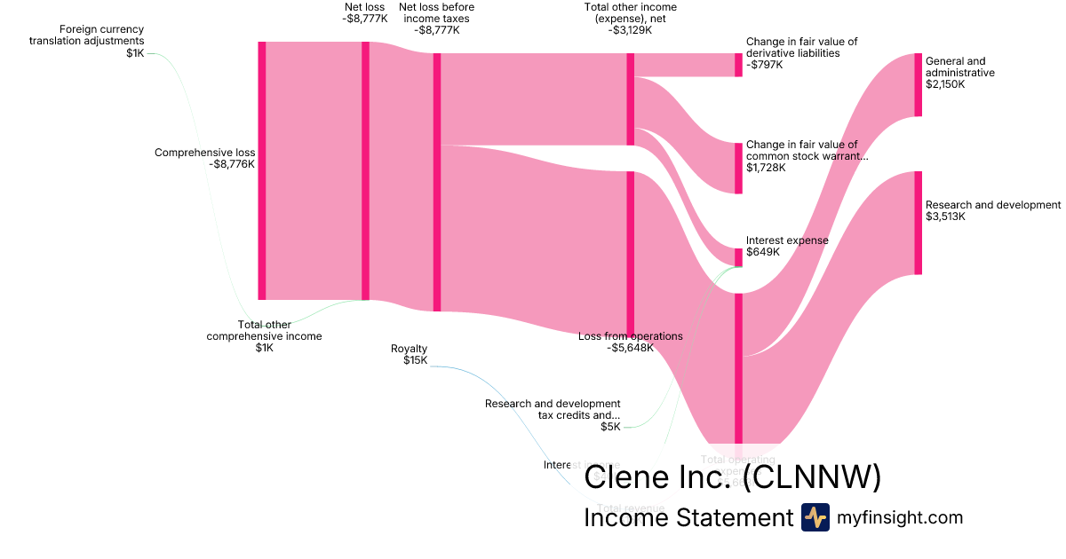 For the quarter ending 2025-09-30, CLNNW made $15K in revenue. -$8,776K in net income. Net profit margin of -58506.67%.