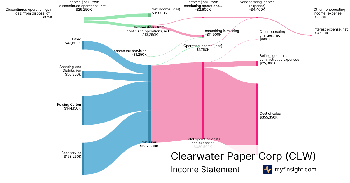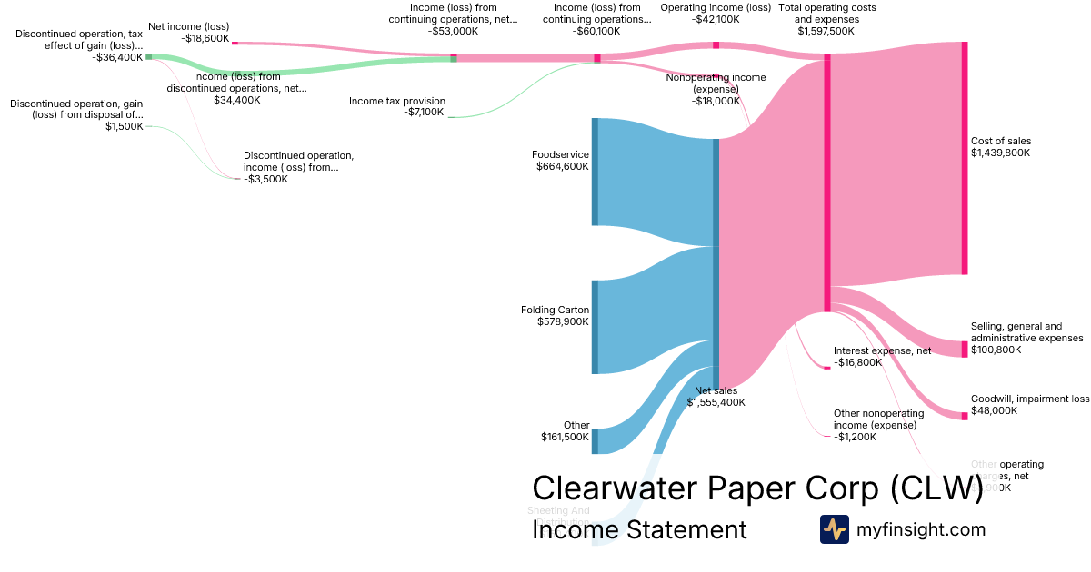 For the year ending 2025-12-31, CLW made $1,555,400K in revenue. -$18,600K in net income. Net profit margin of -1.20%.